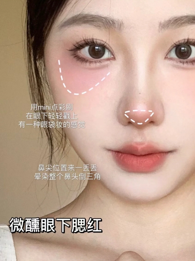 6、幼态微醺腮红:是那种看起来很楚楚可怜惹人怜爱的妆容